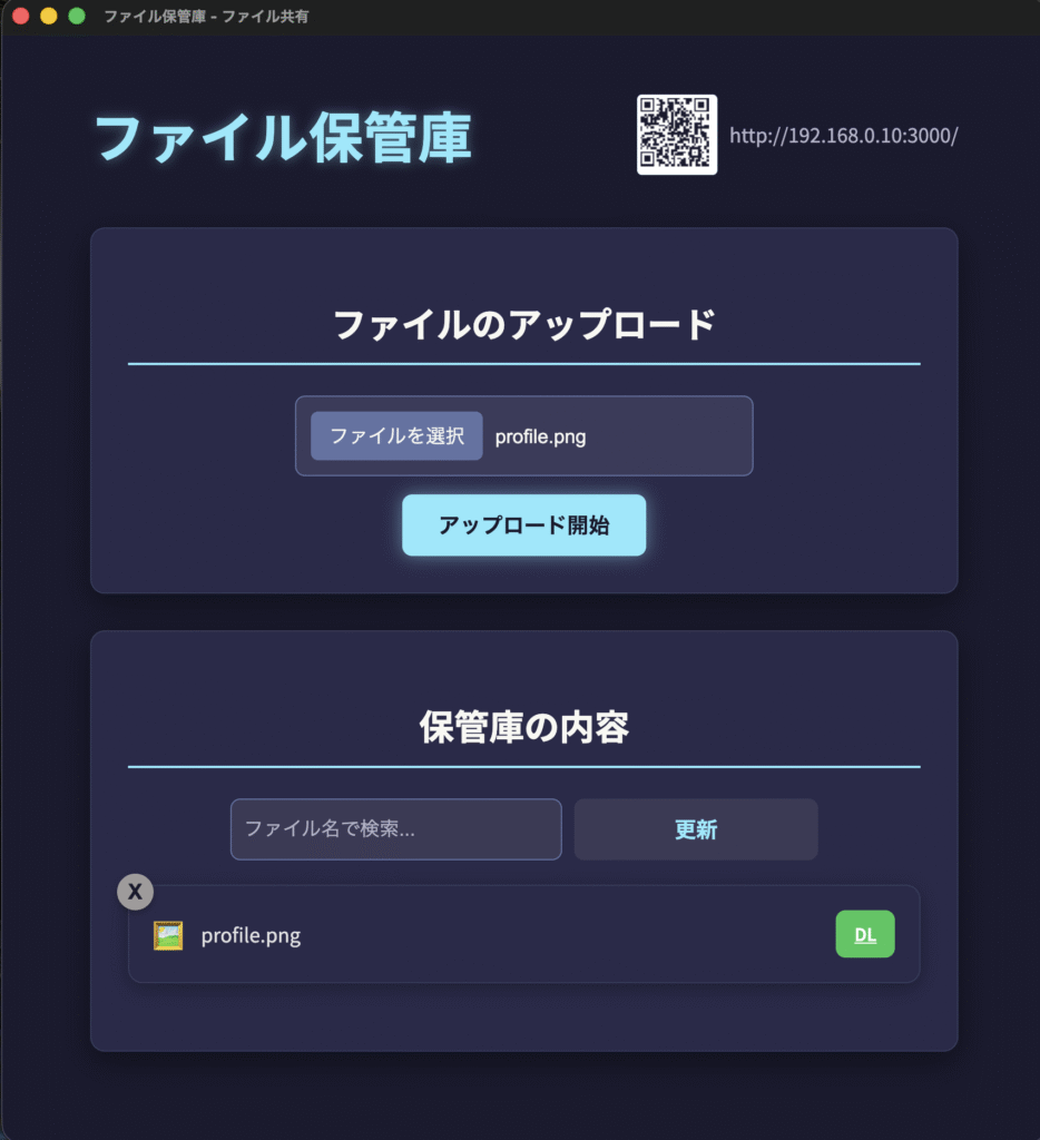 どんなアプリを作成したかというと、同じネットワーク内のデバイスでファイルのやり取りができるアプリです!