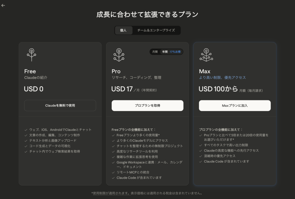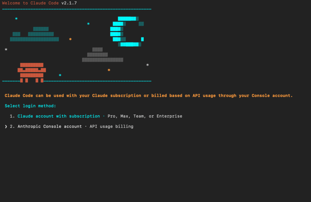 Claude Code Proを使ってるなら1を選択してください。