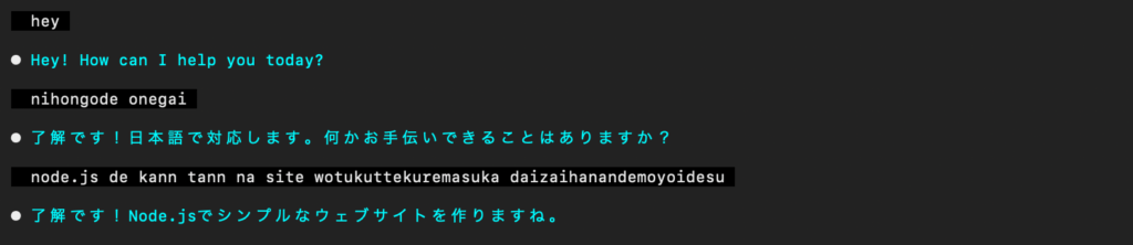 あとは何回かEnterを押すとチャットが開始されます。